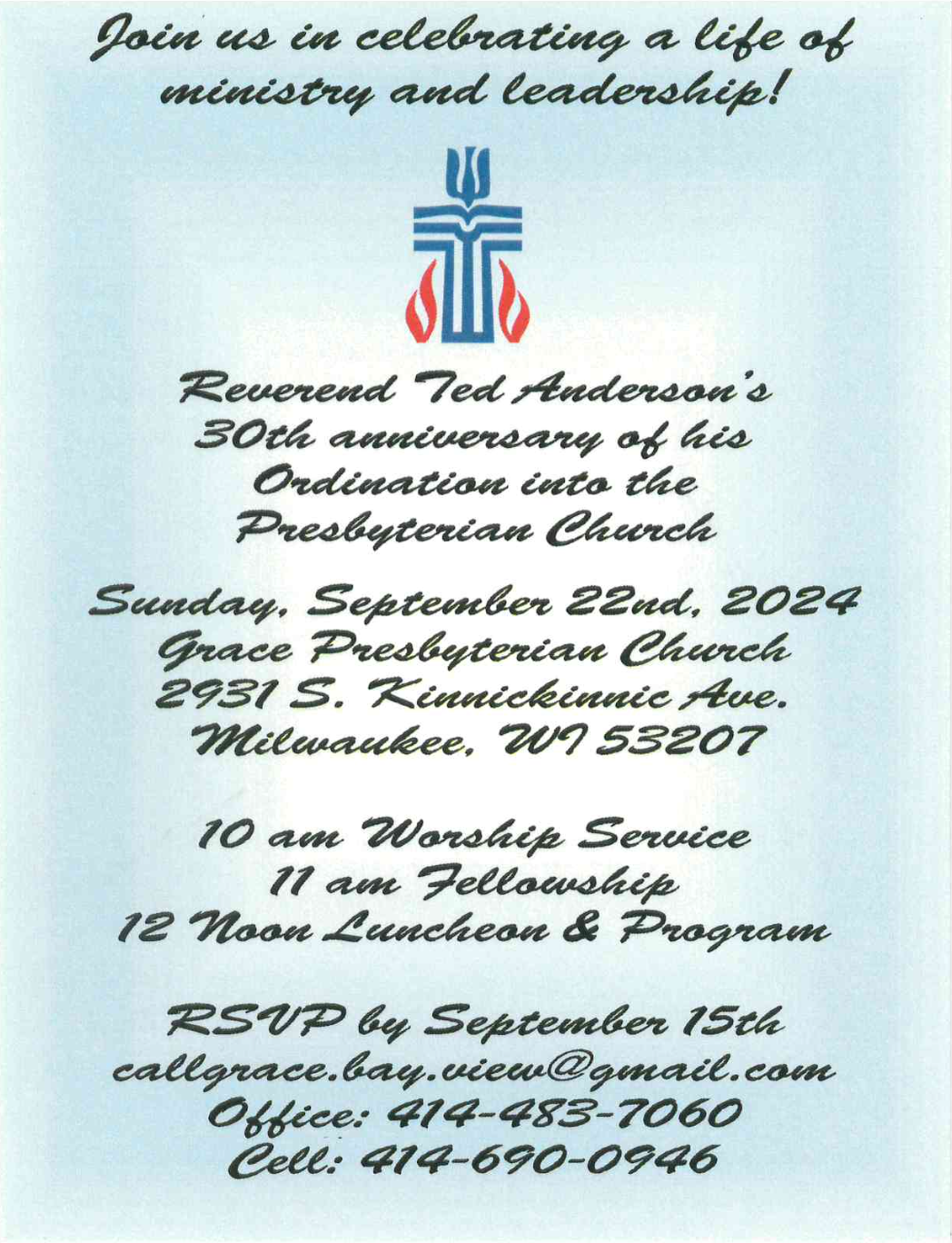 CELEBRATE THE 30TH ANNIVERSARY OF REV. TED ANDERSON'S ORDINATION | |