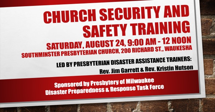 The Church Security & Safety Training event to be held on Saturday, August 24 has been cancelled due to circumstances beyond our control. Disaster Preparedness & Response hopes to reschedule this event at a later time and appreciates the commitment from all those who registered. | |