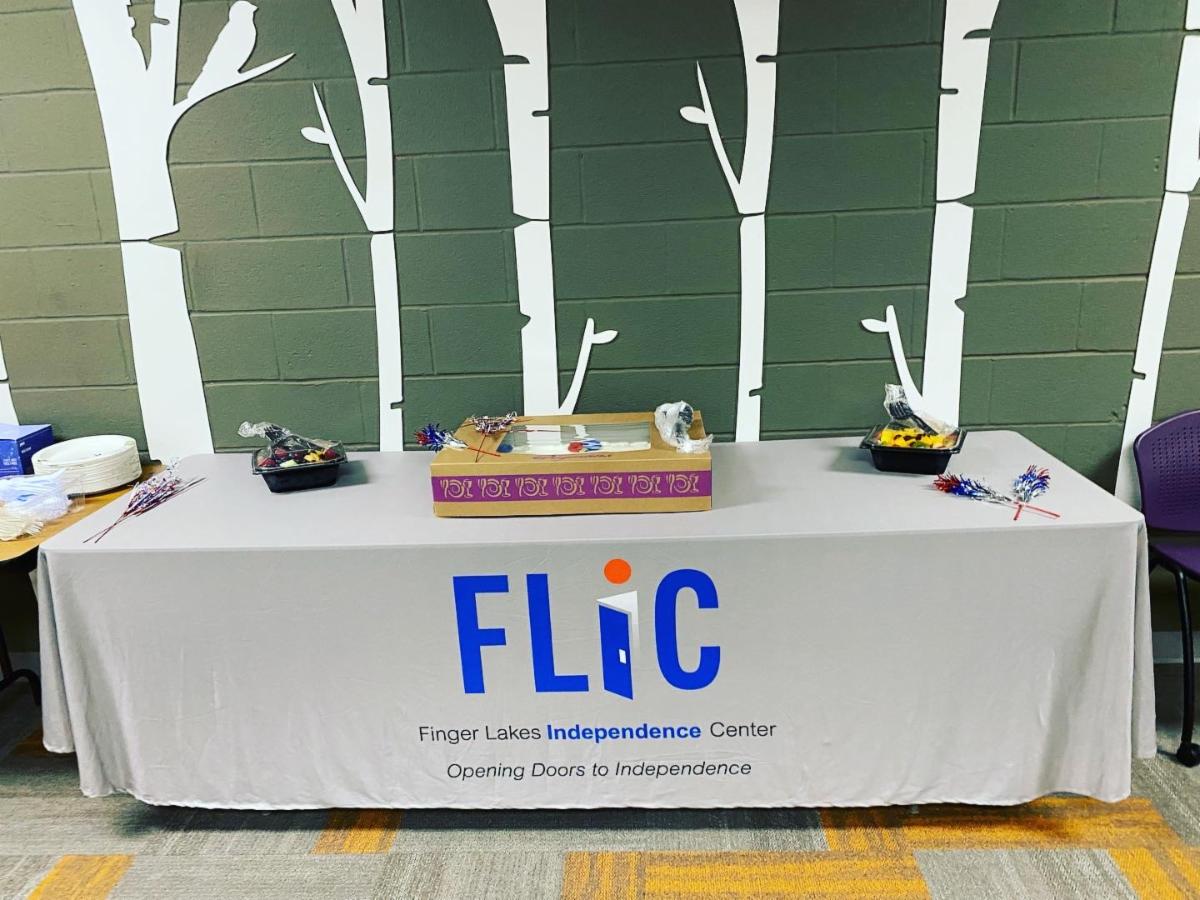 The Americans with Disabilities Act, commonly referred to as the ADA, was signed into law on July 26, 1990. This year marks the 33rd anniversary of the signing. This important date in the civil rights of persons with disabilities is also now knows at Disabilities Independence Day. To mark the celebration, FLIC hosted an open house on Friday, July 28th from 1:00 to 4:00 pm, with cake, fruit, beverages, trivia questions, swag and time to interact with FLIC staff. (Pictures below)