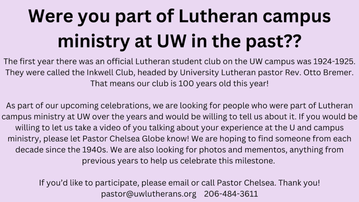 Our Synod’s new Lay Ministry Formation Program will be starting its 2 nd Cohort of participants this September. LMF is a 2-year, cohort-based, certificated program that facilitated discussion, experimentation, and wrestling with what it means to be lay leaders in your church or vocational context. Whether your leadership context is within children/youth ministry, music ministry, social justice, equity and inclusion, small group leadership, evangelism, etc...this program will better prepare you to discern the movement of God in that context and join in God's mission.