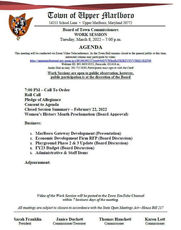 *COVID 19 protocol restrictions according to the State of Maryland will be followed.