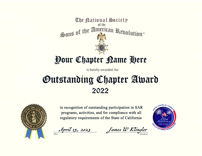 Registration is open for the SAR 133rd National Congress on July 13-20 in Orlando, Florida. CASSAR Past President and current SAR Secretary General, John Dodd, is running for SAR President General. We want to have a large attendance from California to support his candidacy. The link to register for the Congress on our CASSAR website is: www.californiasar.org/event/sar-133rd-national-congress.