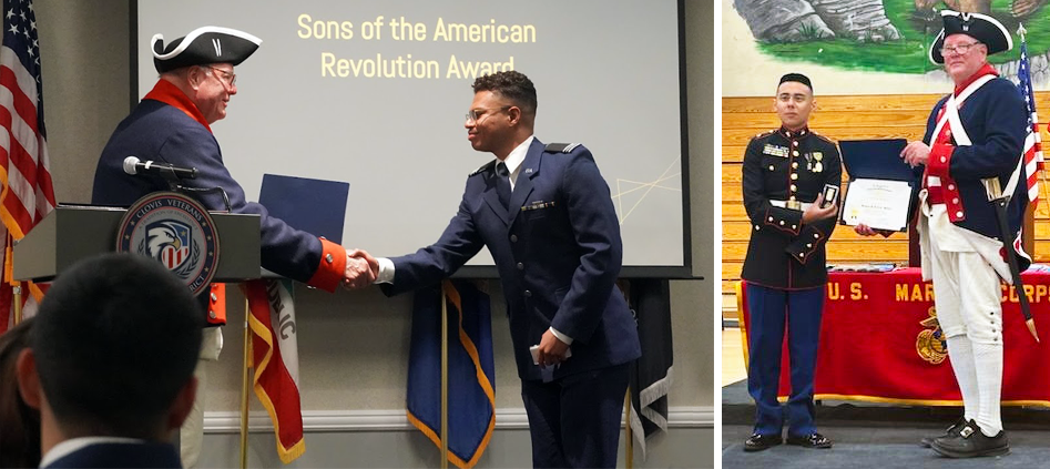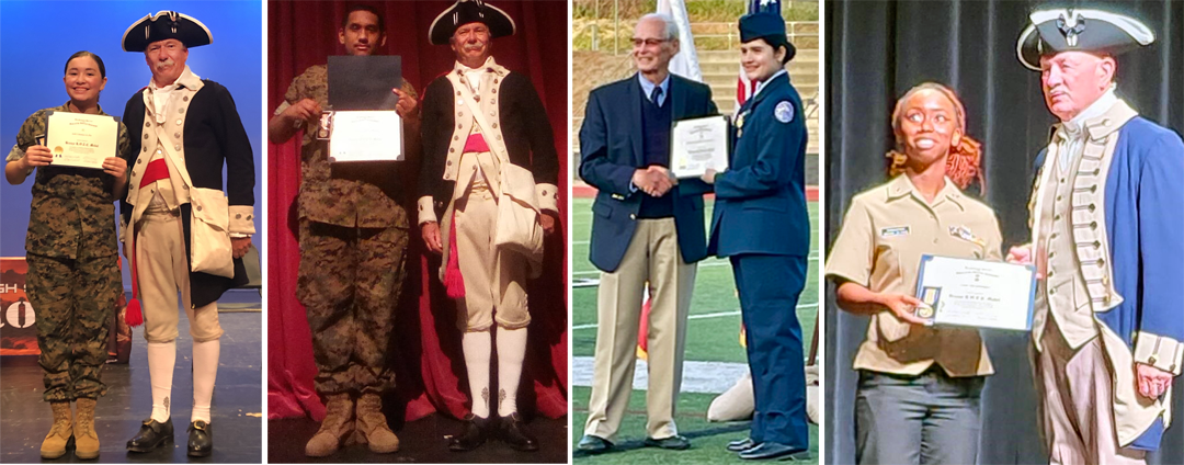 Each year Sacramento Chapter ROTC/JROTC Chairman Roy Adkins coordinates with 2 universities and 10 to 15 high schools to participate in and recognize outstanding cadets with the SAR JROTC medal and certificate.