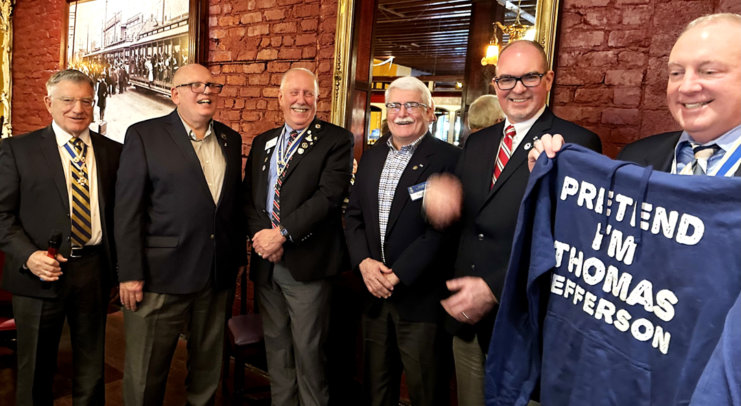 (L-R) VP North Don Littlefield, Bob Vernagallo, VP General Western District Derek Brown, Tom Silva, Glenn Martin, and Thomas Jefferson Chapter President Dan Shurtz | |