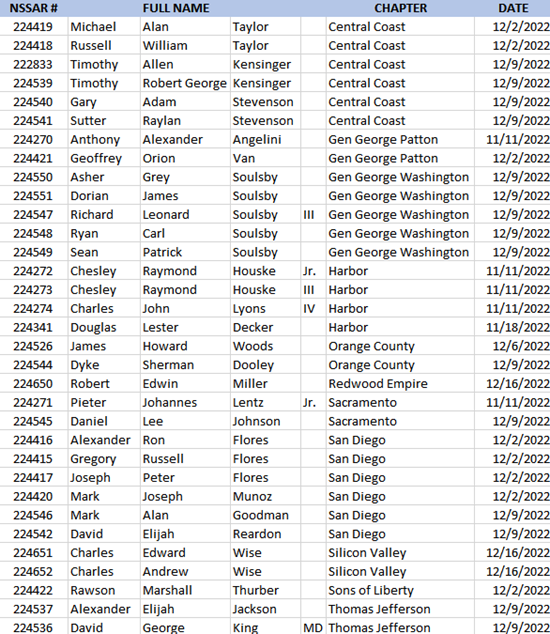 Happy New Year! As we begin the New Year, it’s a good time to set goals for our chapters and state SAR societies.
