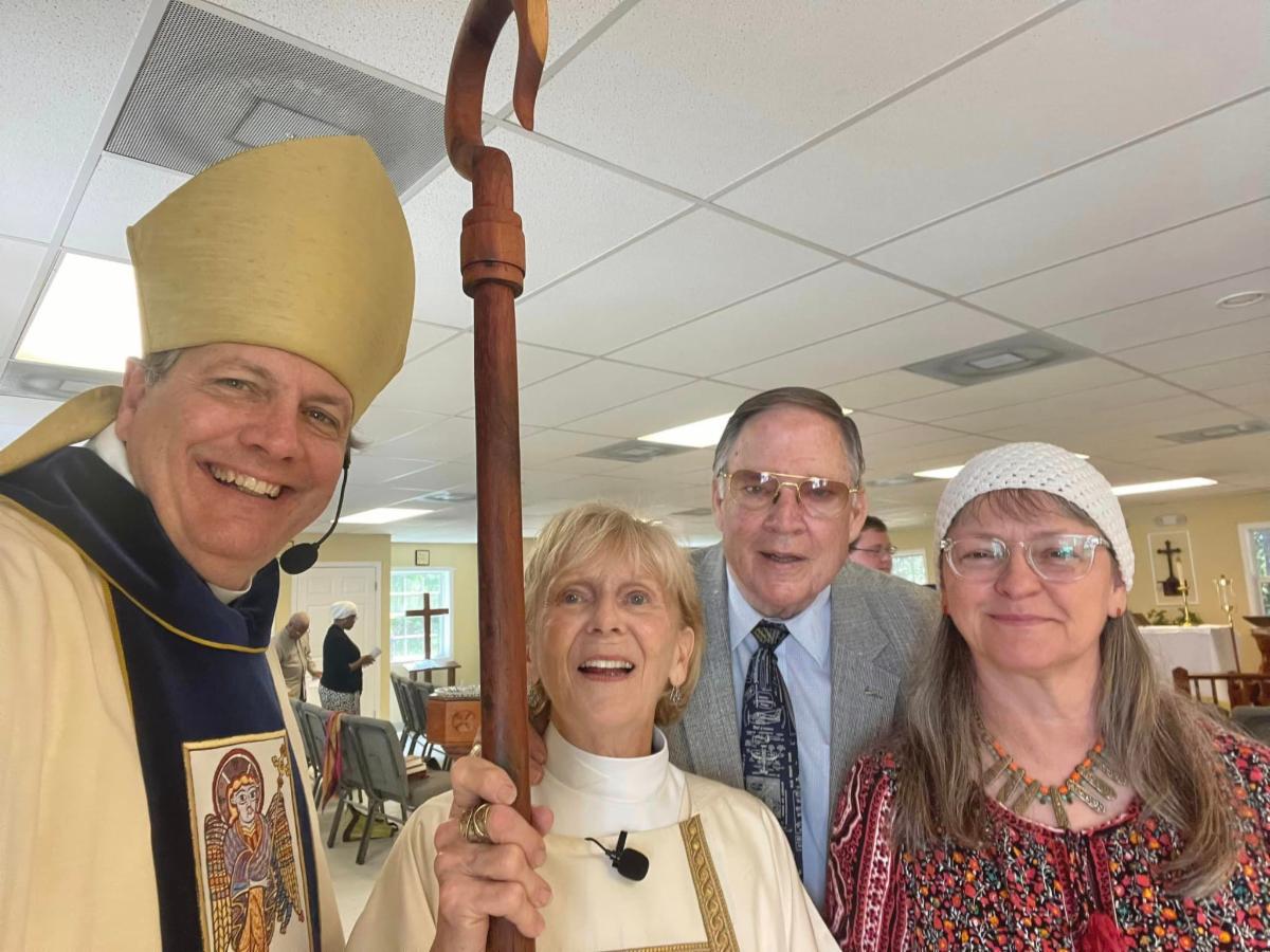 Photo: The Logues with the Rev. Patti Davis, Deacon and her husband Rod at St. Patrick's in Pooler. Bishop Logue asks deacons to accompany him to congregations without a deacon as a part of lifting up these servant ministers in our Diocese.