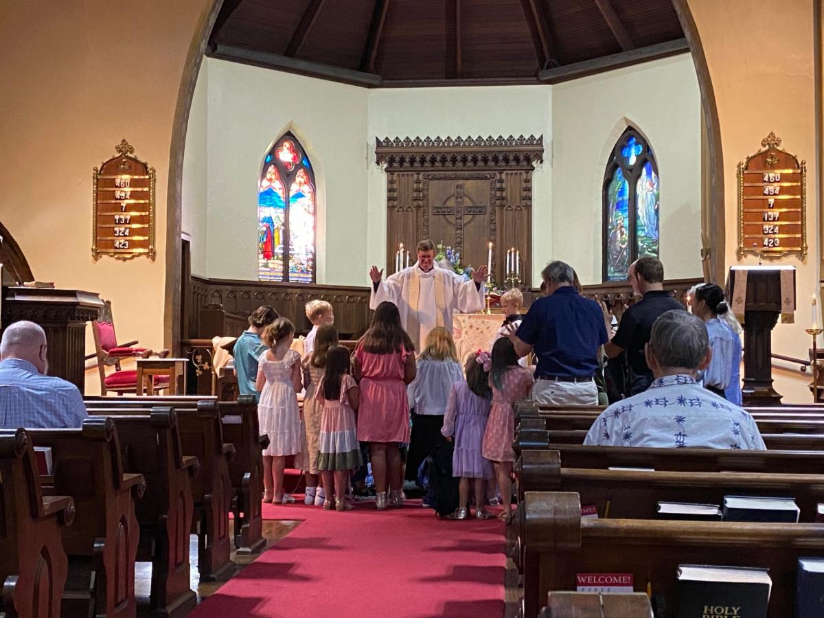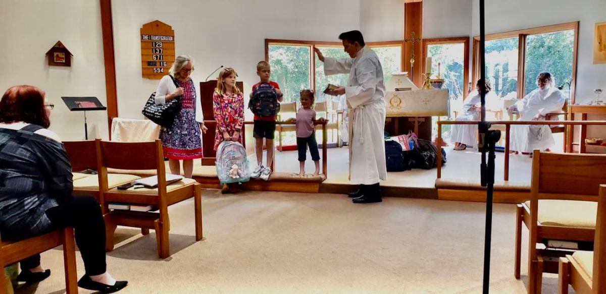 The Rev. Wallace Marsh offers a blessing for students and educators at St. Thomas in Thomasville. | |