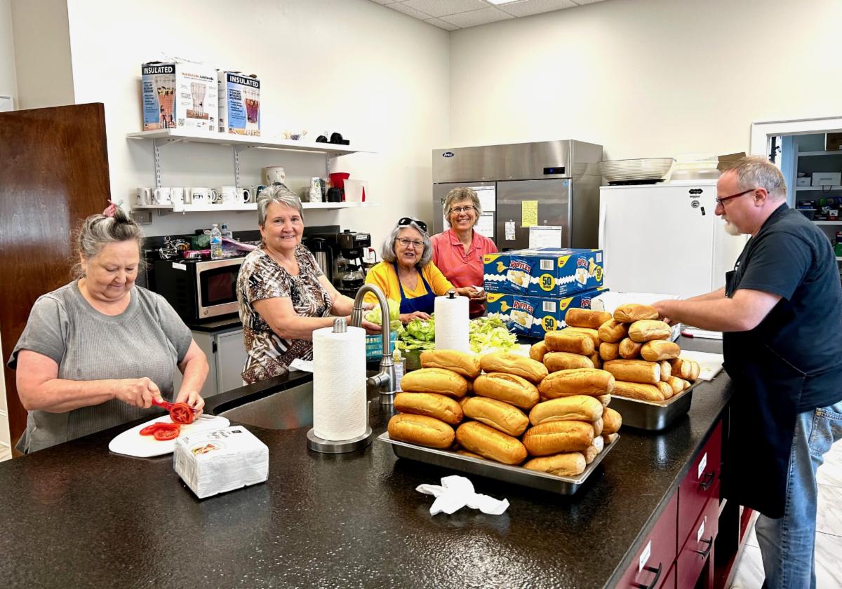 The ECW and friends at St. Andrew's in Darien cooked dinner for 74 high school football players. | |