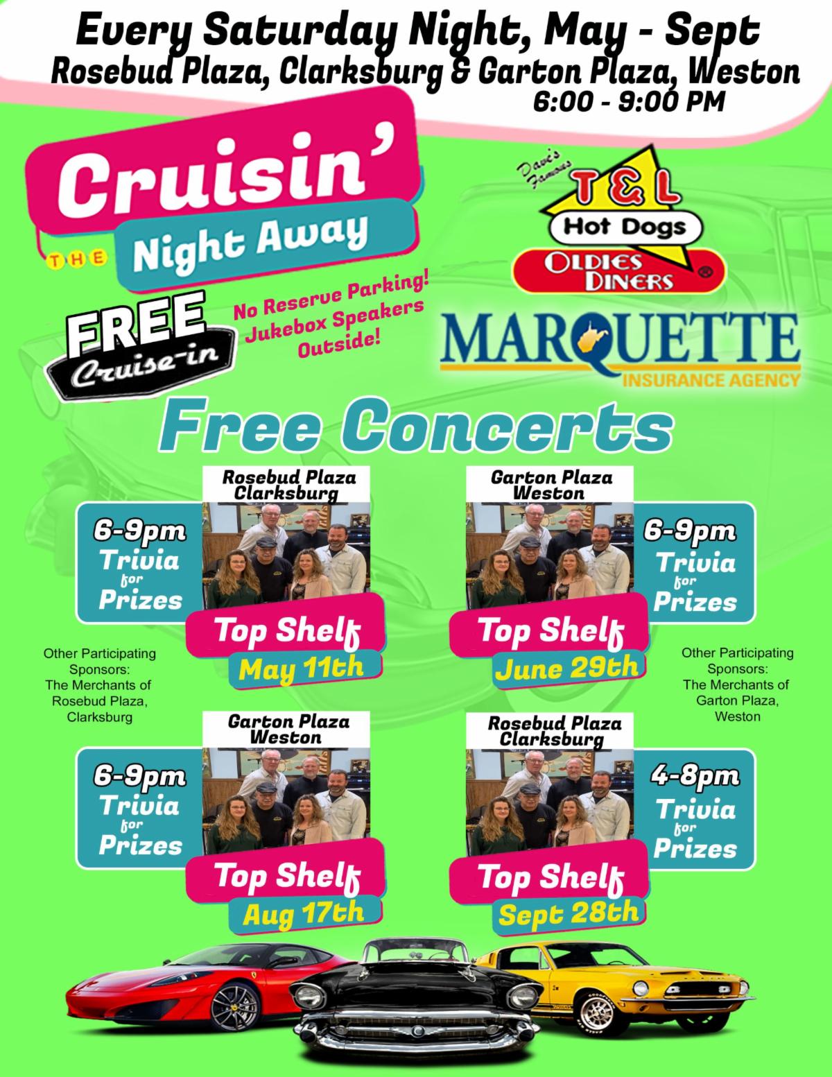 June 6 - Sept 5 at Holt Square Main Street Weston. Call 304-997-0651 for details.
