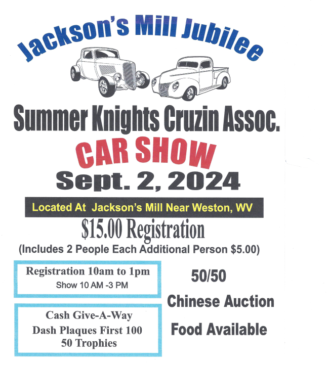 Labor Day Weekend Visit www.jmjubilee.com for details. Event located at 160 Jackson's Mill Rd. Weston, WV. If you would like an application, please email erin.k.vaughn83@gmail.com