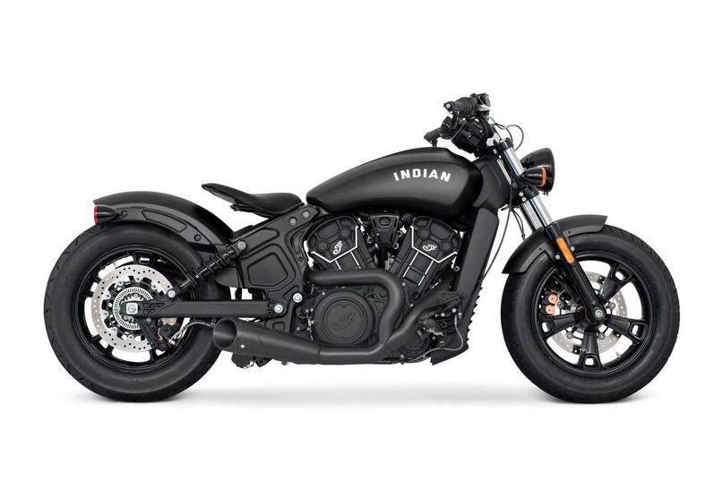 The 2-into-1 Shorty and Turnout systems eliminate the catalytic converter, resulting in heat reduction of 40% as well comes with a 220-degree wrap-around full coverage heat shield that can be used or removed. The header and the heat shield are made in steel – a massive performance boosting 50% reduction in weight is claimed, compared to Indian's stock system. Our precision-machined, interchangeable aluminum End-Caps – Available styles American Outlaw, Combat or Combat Fluted & turnout Straight with the honeycomb grid, all of which come in a variety of finishes.