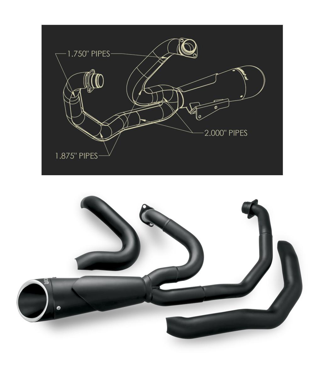 The 2-Into-1 Shorty with two-step baffles and triple-step header, the complete 5-step system gives ultimate horsepower, resulting in a nice, deep, smooth, and throaty sound.