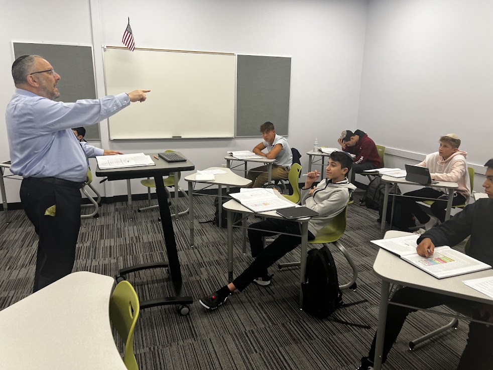 Freshmen in Rabbi Louis Fliegelman's Talmud class are learning Masechet Brachot.