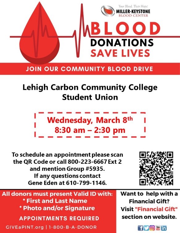 LCCC Schnecksville - Thursday, March 9 from 2 - 5 p.m.