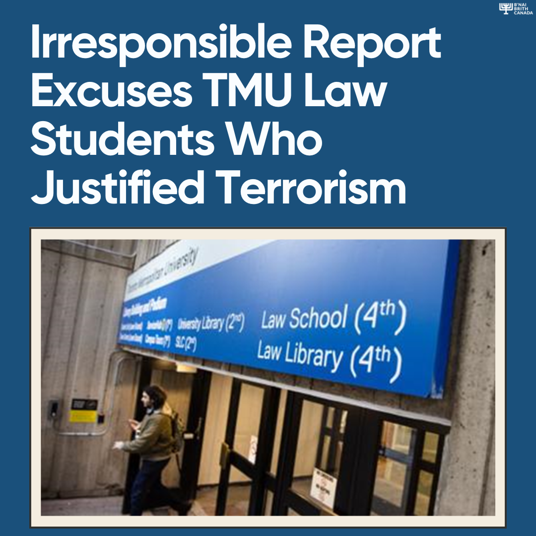 An irresponsible report excuses TMU law students who justified terrorism. B’nai Brith Canada demands accountability as students face no consequences for supporting Hamas' attacks against Israel.
