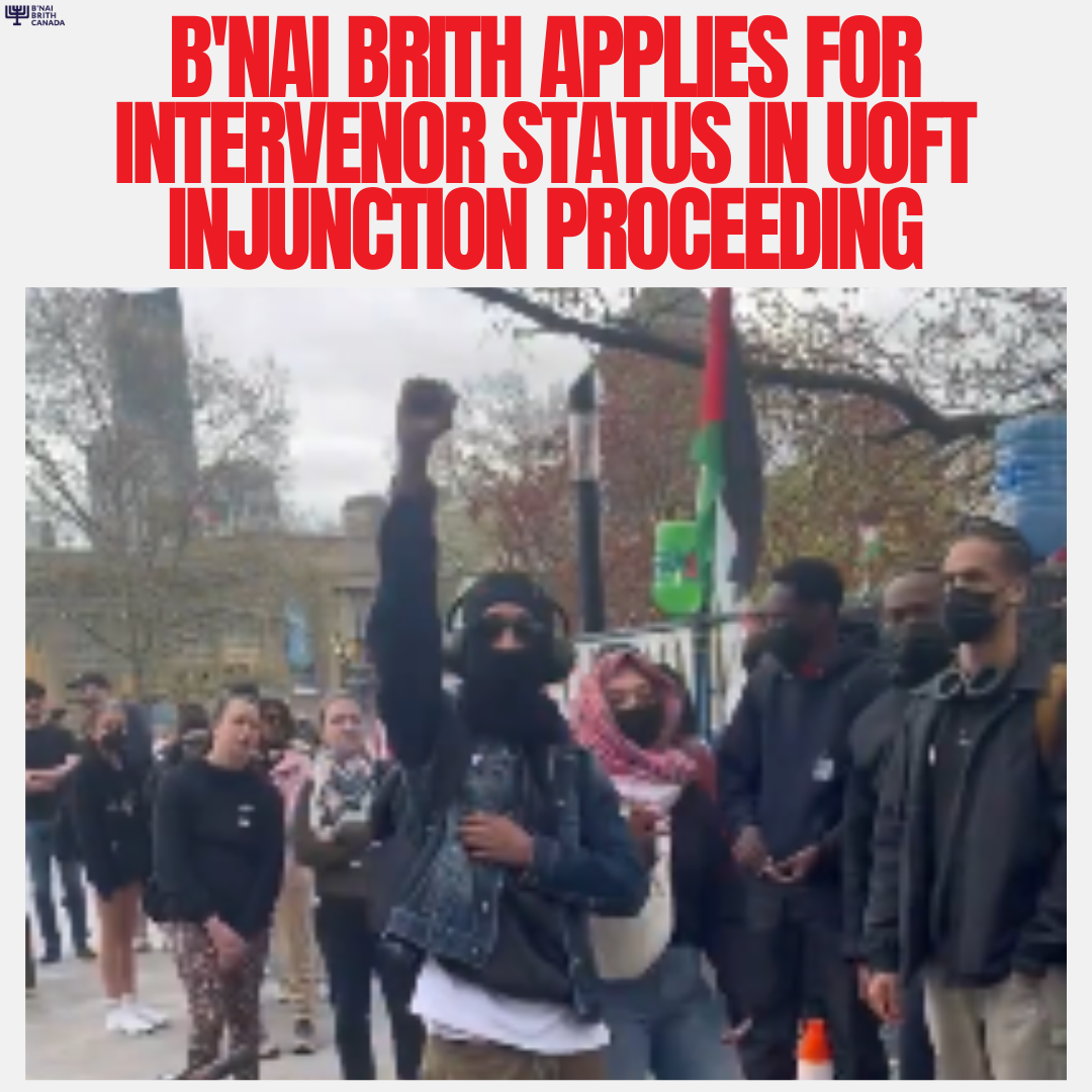 B'nai Brith Applies For Intervenor Status in U of T Injunction Proceeding | | |