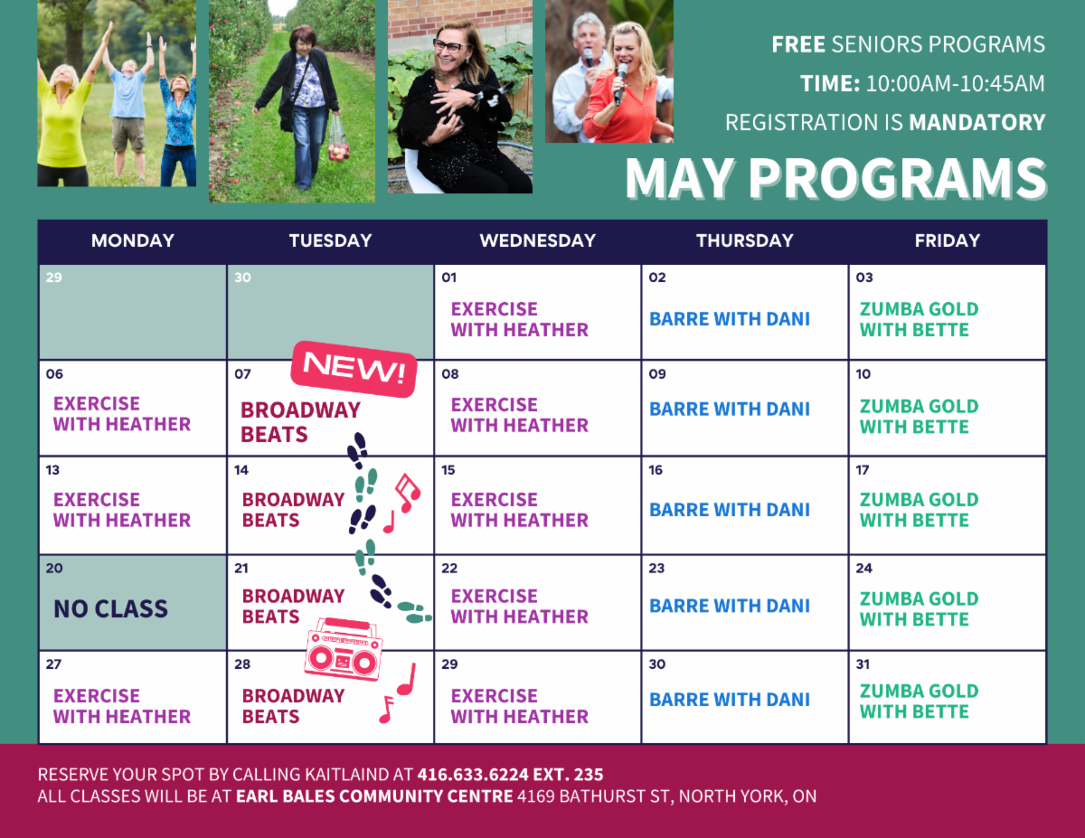 Nos programmes pour les personnes âgées sont pleins d'activités amusantes en mai et juin. Consultez le calendrier sur notre site Web pour plus d'informations sur nos programmes à venir.