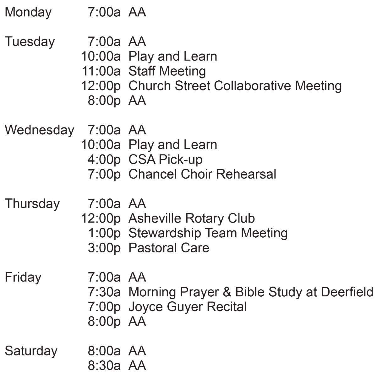 Trinity’s Summer Schedule begins June 9 when our 10:45a service moves to 10:00a. The full schedule for Sundays June 9 to August 18 will be:
