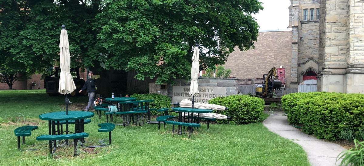 At the height of the COVID-19 pandemic hit, University UMC’s food pantry went from distributing food to 50 families from the Southeast side of Syracuse every Friday to 350 families from all over Syracuse. Currently, they serve about 200 Syracusan families every Friday.