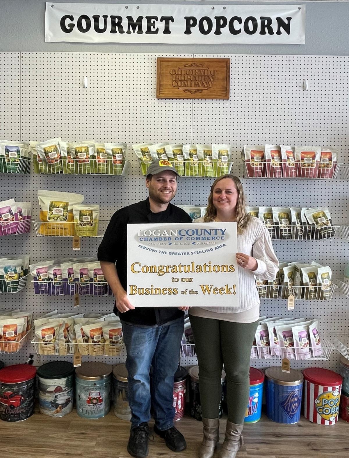 ....Colorado Popcorn Company is a gourmet popcorn manufacturer, wholesaler and retailer located in Sterling and was established in 1987. Zach and Brea Souffrant purchased the business from Kathy Littler in 2017. Colorado Popcorn started as a business to offer a superior popcorn product at a competitive price.