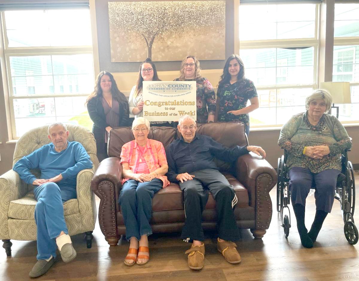 The Logan County Chamber of Commerce is honoring The Legacy at Sterling as the Business of the Week represented by (front row left to right) Charles Golding, Delma Fitzjohn, Gerald Jefferies, Beverly McGrath and (back row left to right) Destinee Curtiss, Administrator Savanna Stallings, Rhonda Hagemann and Abby James. | |