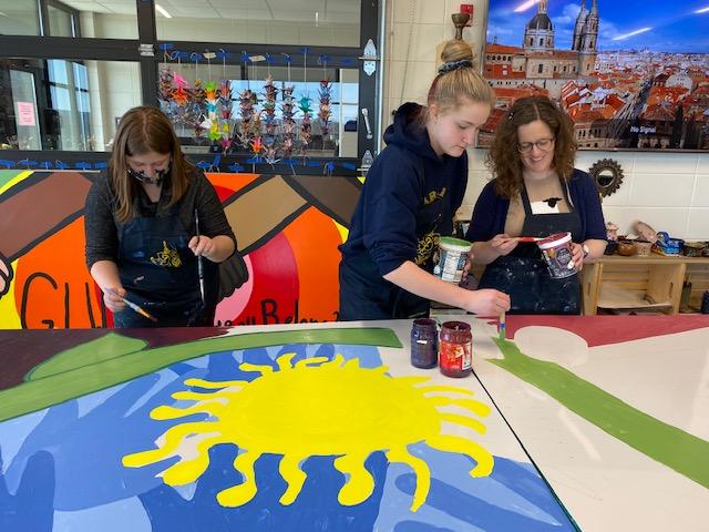That design was then handed off to Mrs. Meg Watson, BHS art teacher, who worked with her fabulous Art Club throughout the following school year and into the summer! The group painted each of the panels to resemble the original student drawings and they even had an opportunity to add some of their own ideas and designs!