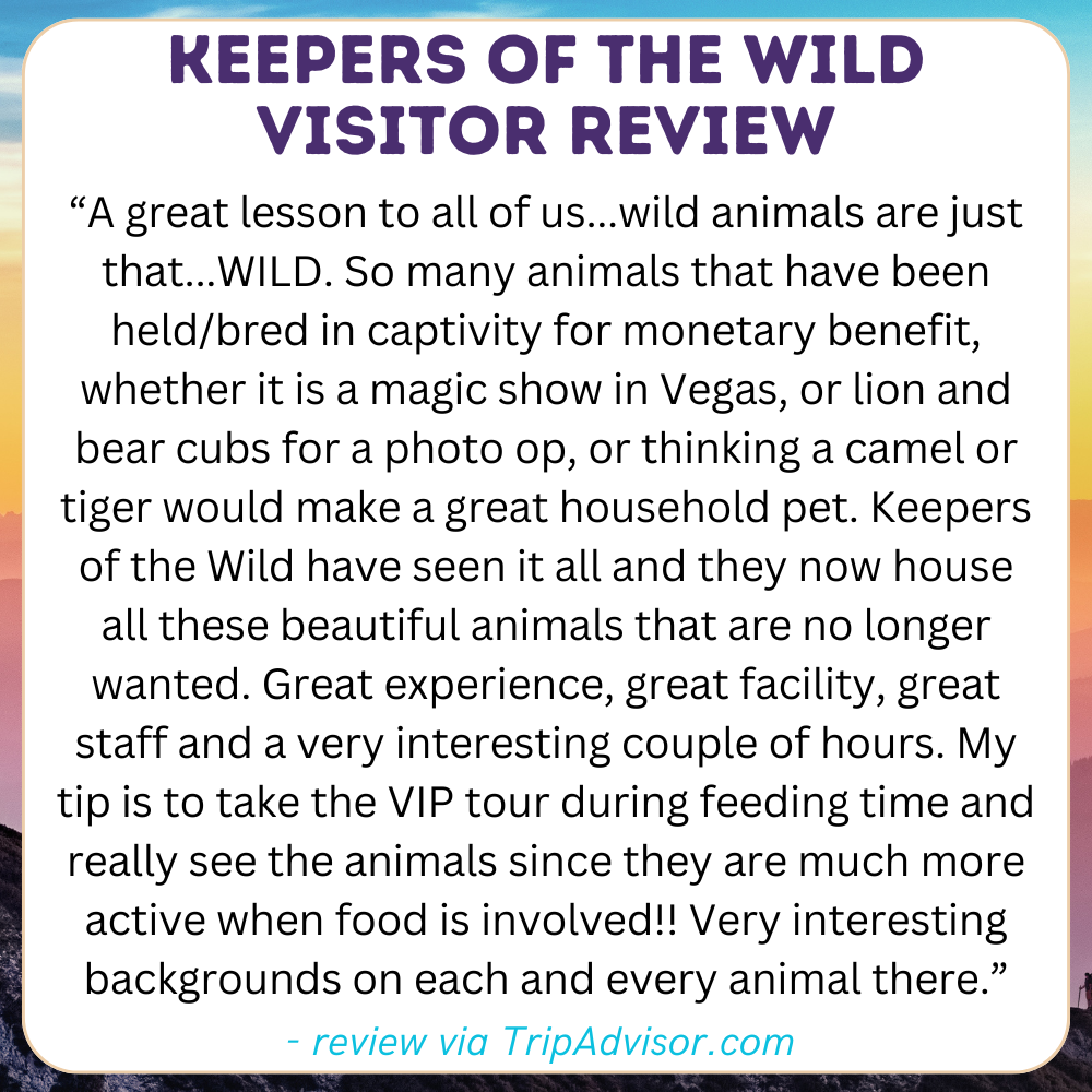 As you plan your summer road trips and destinations, don't forget about Keepers of the Wild. Get your kicks on Route 66 and have a great time making memories while supporting our nonprofit wildlife sanctuary. 100% of admission and gift shop sales go directly toward the care of the animals.