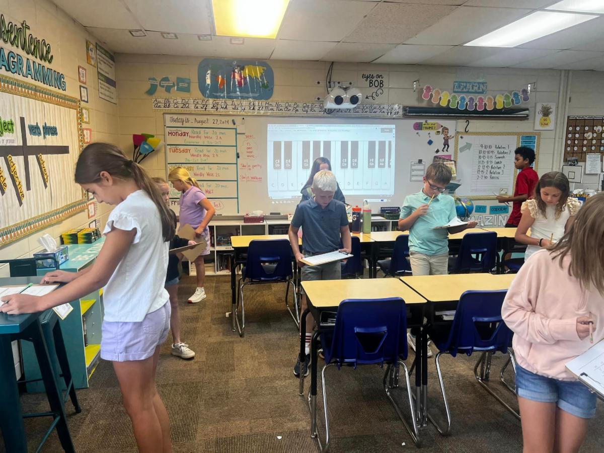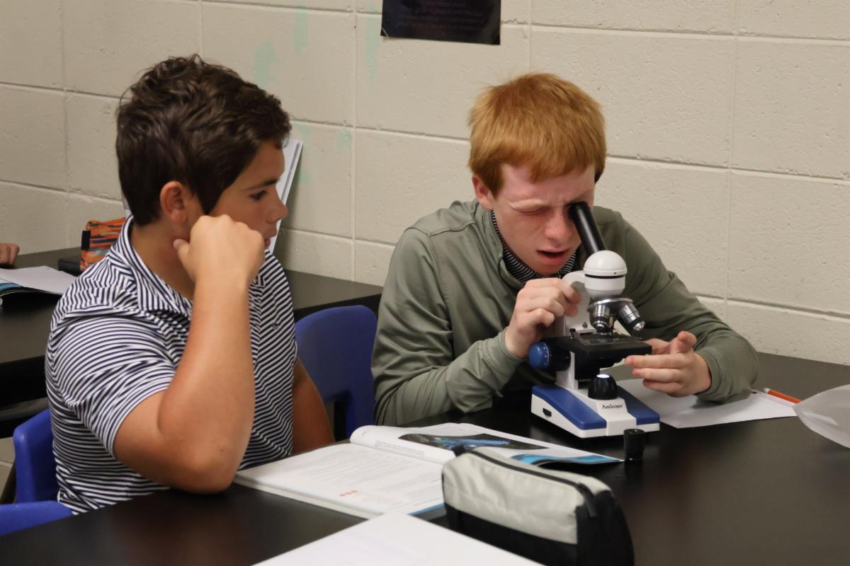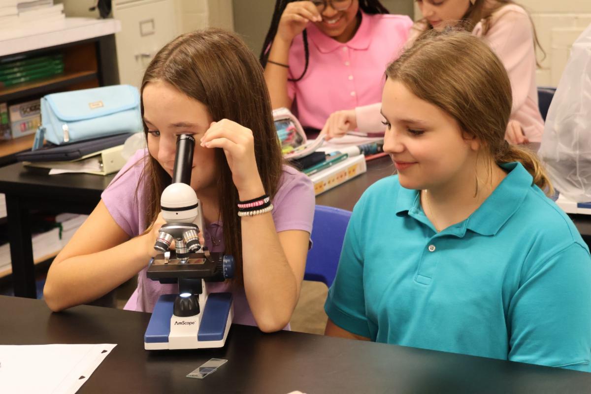 | Fourth graders in Mrs. Shannon Reber’s English classes completed an "around the room scoot" to review sentences, run ons and fragments. Students used their answers to play notes on the virtual piano. If their answers were correct, they heard the song “Twinkle, Twinkle Little Star.” #interactivelearning #westfieldfourthgrade #educationofmindandheart | Seventh graders in Mrs. Leigh Ann Champion's life science classes are studying cells under the microscope by viewing pond water droplets and hair samples. #westfieldscience #educationofmindandheart | Do the properties change? Eighth graders in Mr. Jarrod Lewis' physical science class conducted lab experiments to determine the presence of physical and/or chemical change. #handsonlearning #westfieldscience #educationofmindandheart | Upper School students in Mrs. Robin Leonard’s Honors English II classes are working in pairs, discussing theme, characterization, and heroic transformations in the novel A Lesson Before Dying by Ernest J. Gaines. Students read the book over the summer as a part of their assigned reading for the course. #westfieldupperschool #collaborativelearning #reading #educationofmindandheart | AP Environmental Science students worked in groups to learn about four of earth’s biogeochemical cycles. #westfieldscience #collaborativelearning | First graders in Mrs. Karen Ray's art class are learning to draw through directed drawing. The students use their listening skills to pay attention to and follow the step-by-step instructions given by Mrs. Ray and then they use their creative skills and imagination to create their own art. Directed drawing helps students to build confidence, be creative, and have fun in art! #firstgradeart #directeddrawing #educationofmindandheart | |