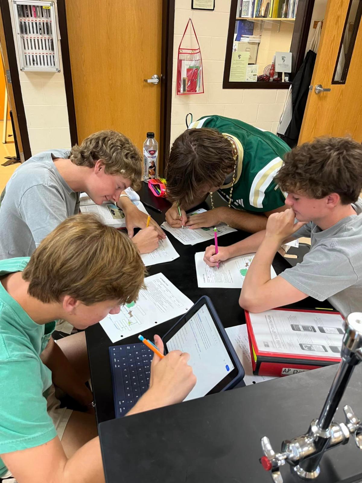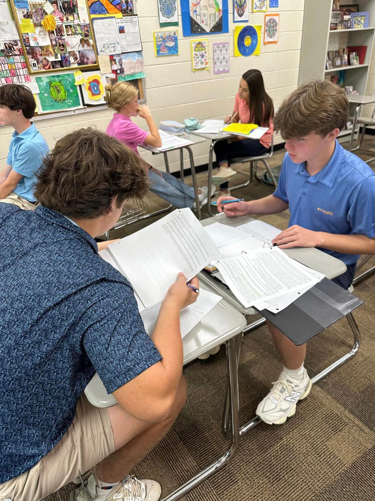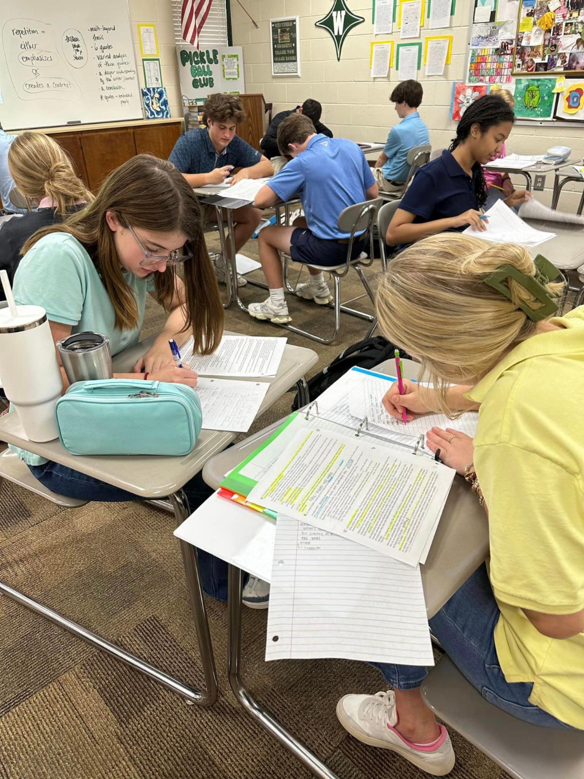 | Fourth graders in Mrs. Shannon Reber’s English classes completed an "around the room scoot" to review sentences, run ons and fragments. Students used their answers to play notes on the virtual piano. If their answers were correct, they heard the song “Twinkle, Twinkle Little Star.” #interactivelearning #westfieldfourthgrade #educationofmindandheart | Seventh graders in Mrs. Leigh Ann Champion's life science classes are studying cells under the microscope by viewing pond water droplets and hair samples. #westfieldscience #educationofmindandheart | Do the properties change? Eighth graders in Mr. Jarrod Lewis' physical science class conducted lab experiments to determine the presence of physical and/or chemical change. #handsonlearning #westfieldscience #educationofmindandheart | Upper School students in Mrs. Robin Leonard’s Honors English II classes are working in pairs, discussing theme, characterization, and heroic transformations in the novel A Lesson Before Dying by Ernest J. Gaines. Students read the book over the summer as a part of their assigned reading for the course. #westfieldupperschool #collaborativelearning #reading #educationofmindandheart | AP Environmental Science students worked in groups to learn about four of earth’s biogeochemical cycles. #westfieldscience #collaborativelearning | First graders in Mrs. Karen Ray's art class are learning to draw through directed drawing. The students use their listening skills to pay attention to and follow the step-by-step instructions given by Mrs. Ray and then they use their creative skills and imagination to create their own art. Directed drawing helps students to build confidence, be creative, and have fun in art! #firstgradeart #directeddrawing #educationofmindandheart | |