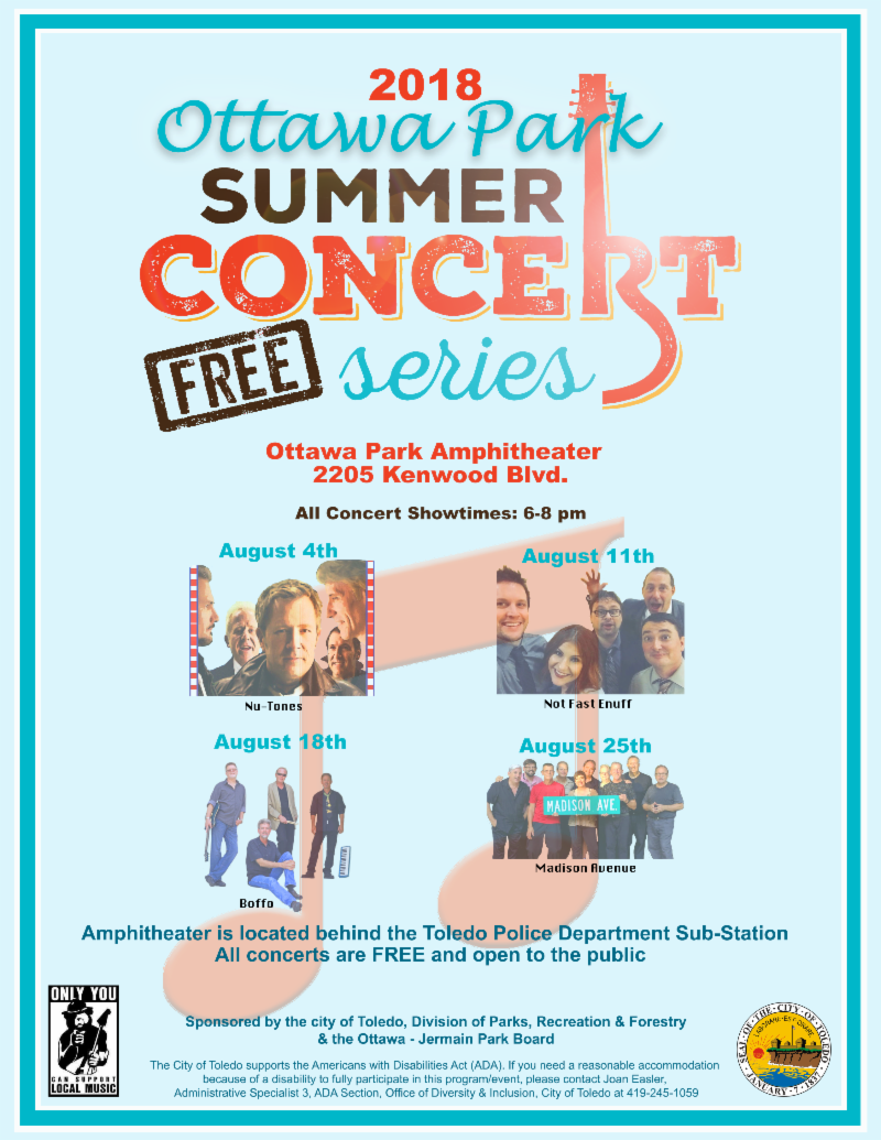 FREE Ottawa Park Summer Concert for 2018 is 6 p.m., Saturday, Aug 25.