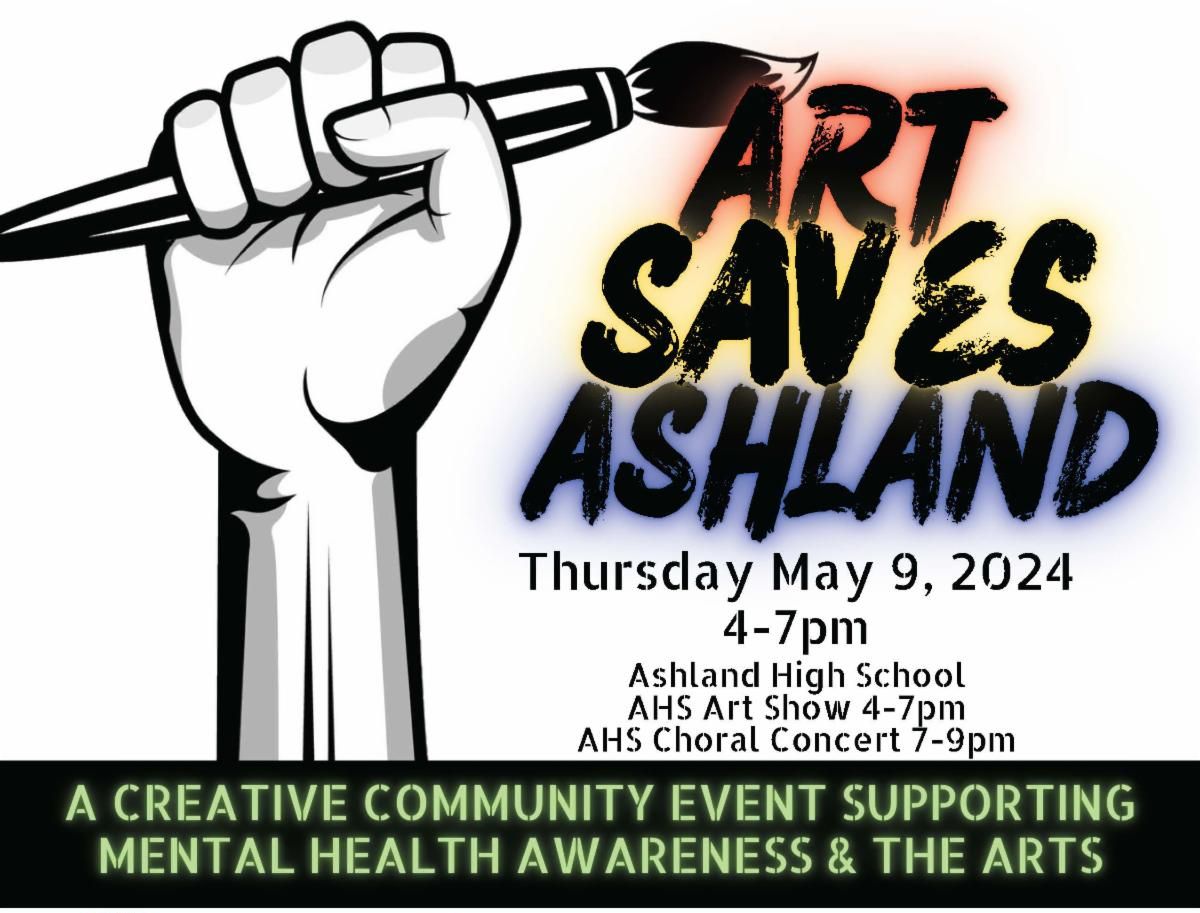 Join The Department of Prevention & Human Services, The Decisions At Every Turn Coalition, and the Ashland High School Art Department on May 9th from 4-7pm for “Art Saves Ashland”, a creative community event recognizing Mental Health Awareness Month!