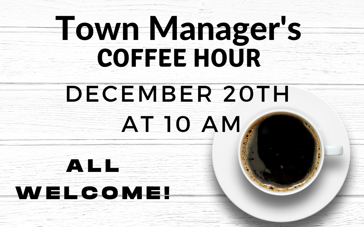 Town Manager, Michael Herbert, is having a coffee hour Wednesday, December 20th, at 10am at the Community Center! At the last Coffee Hour we had 12 residents come and talk about different things going on in town. Accessory Dwelling Units and the MBTA Communities Zoning Law. We invite everyone to attend and bring your questions!