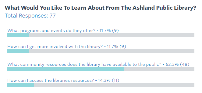 The Town of Ashland will be hosting a Citizens Academy, and in this academy, we will educate citizens on the inner workings of our town, providing an in-depth look into the various departments and services that make Ashland thrive. While we are in the process of planning the curriculum we want to know what you want to know! The next few weeks the poll will be asking you about what topics you are interested in for each department. | |