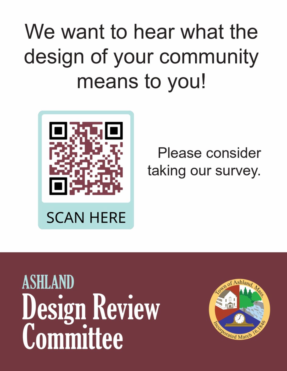 Please take a few minutes to fill out this short survey. You can access the survey by clicking HERE. If you have more feedback, please email us at designreview@ashlandmass.com.