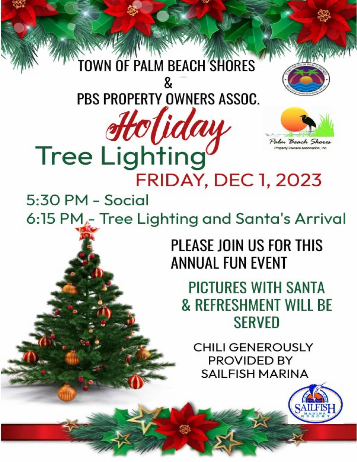 I hope your Holidays are going well and you can attend the Christmas Tree Lighting on Friday, December 1st.