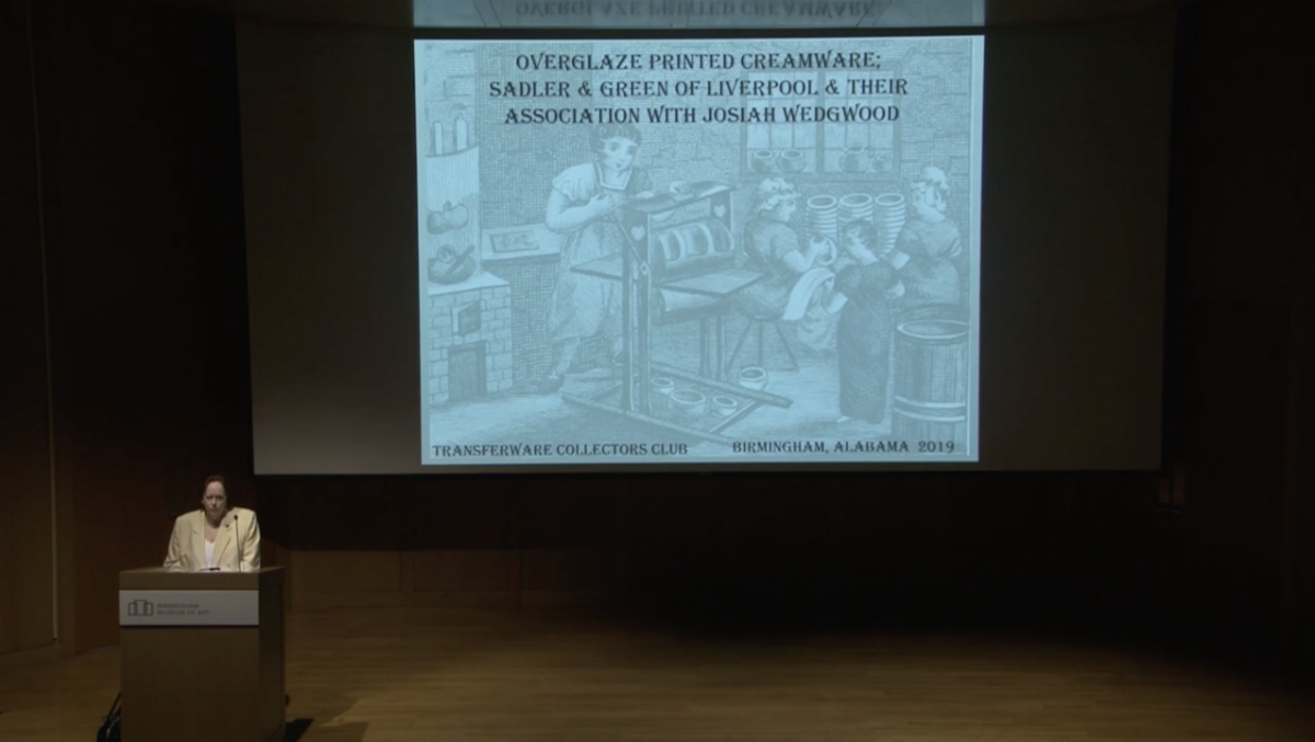 Overglazed Printed Creamware; Sadler & Green of Liverpool & Their Association with Josiah Wedgwood was presented at the TCC 2019 Annual Meeting in Birmingham, AL. Gaye, now retired, was Curator at the Wedgwood Museum in Barlaston, England, is currently an honorary senior research fellow with the V&A Research Institute, and was recently awarded the M.B.E. This lecture was made possible by the generous support of the Paul and Gladys Richards Research Grant Program for Studies in British Transferware. Watch Video