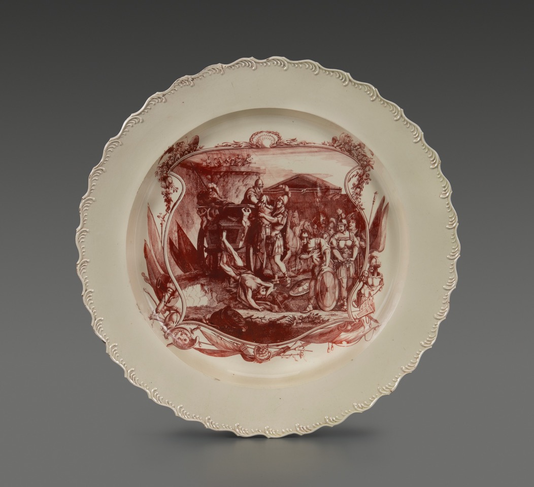 Thanks to Rob Hunter’s FB site for this ca. 1765-70 transferware (bat printed?) sepia creamware plate in the Chipstone collection, with an image of Hector being dragged around the walls of Troy behind Achilles’ cart as described in Homer’s Iliad. Thanks to Google Images and the website Alamy for this 1719 public domain image of a print by Bernard Picart, the probable source print, although Chipstone references an engraving by T. Rothwell from a 1711 translation of the Iliad. Whatever the source, the plate is spectacular! See larger image. See past Photos of the Month.