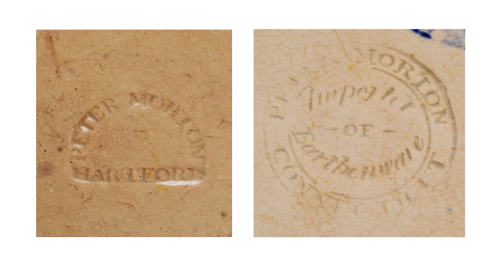 Attention: Seeking additional images and examples of ceramics produced by Enoch Wood & Sons with the impressed importer's backstamp of Peter Morton, a Hartford, Connecticut, importer of English earthenware. Two different types of backstamps are found on ceramics retailed by Morton during his time in Hartford, examples of which are illustrated below. The first reads, "Peter Morton Hartford," and the second, "Peter Morton Importer of Earthenware Connecticut." Please contact Dan Sousa at dsousa@historic-deerfield.org or Neil Ewins at neil.ewins@sunderland.ac.uk with any information.