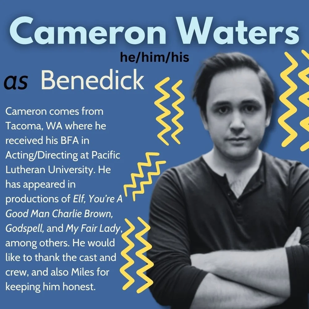 I could not ask for better casting than Cameron Waters as Benedick and Naiya Alexis as Beatrice. There is a very real chemistry between the two in every "skirmish of wit" of their "merry war." Waters' timing is impeccable as he harvests every microgram of humor from his lines. Alexis, in addition to holding her own, manages to give the audience a glimpse of the tender vulnerability behind Beatrice's bravado. At no time, however, does either of these go "over the top" -- even at their silliest, both are believable characters start-to-finish.
