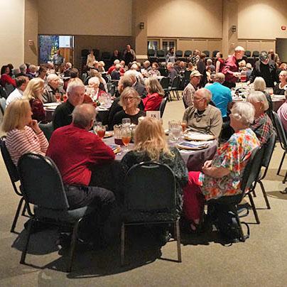 Dinner ($8 for adults and $5 for children ages 5-12 years old) starts at 5:00 pm in the Worship Center. The kitchen line closes at 6:00 pm, but stay and fellowship with us until a Small Group/Class begins at 6:30 pm in the Education Building or when Worship begins at 6:35 pm in the Chapel. April 17 Menu: Chicken pot pie, mashed potatoes, soup, salad, roll, and dessert.