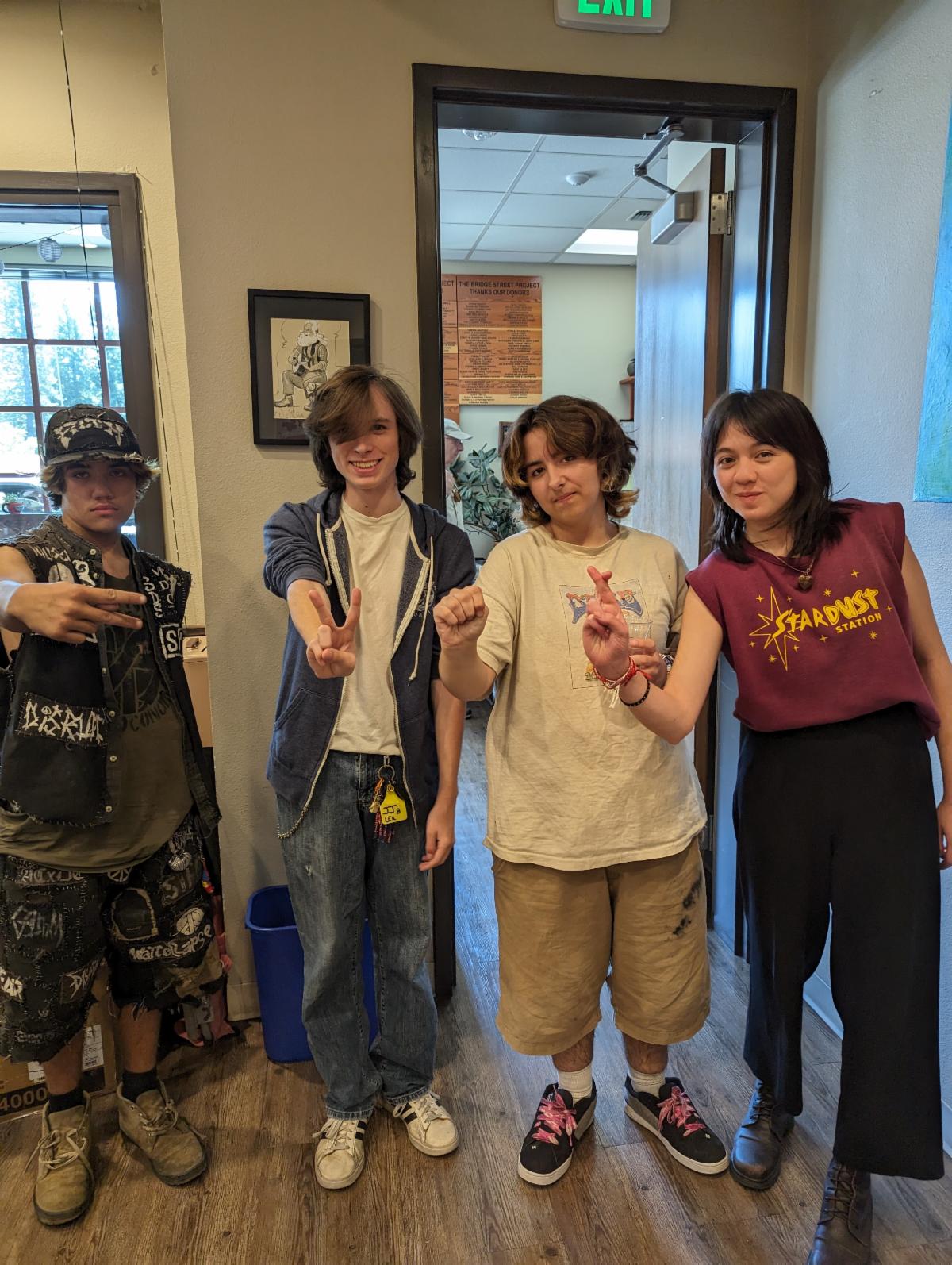 KVMR Interns 2024--left to right-- Alex (Bitney Springs College Prep), Pants (Connecting Point 211), Eddie (Bitney), Amelia (211)
