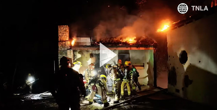 At 8:30pm at 22255 W Mulholland Dr in Woodland Hills a report of a house fire came out. Units arriving onscene found a abandon home fully engulfed in flames. The 2 story house was known to have homeless people living inside it, but were not found at the scene. The garage/barn burned and the fire spread to the house. The Fire was knocked down in 25 minutes. No injuries were reported.