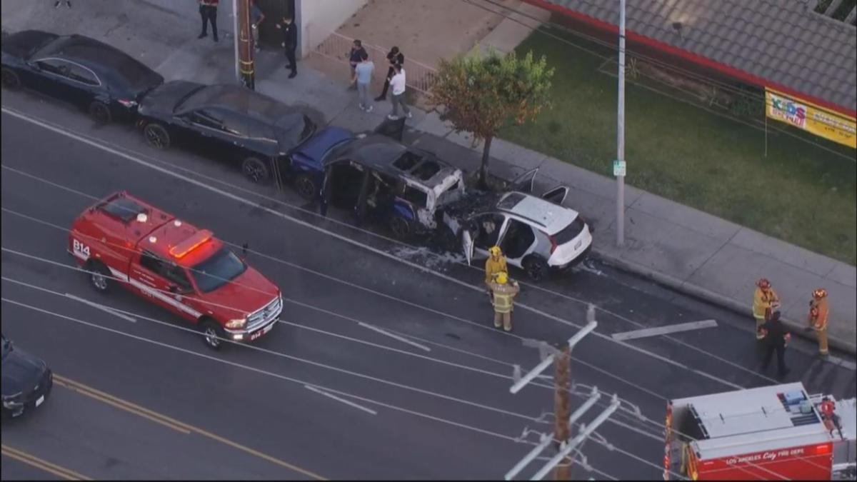 2 men escape burning car after chain-reaction crash in Valley Glen