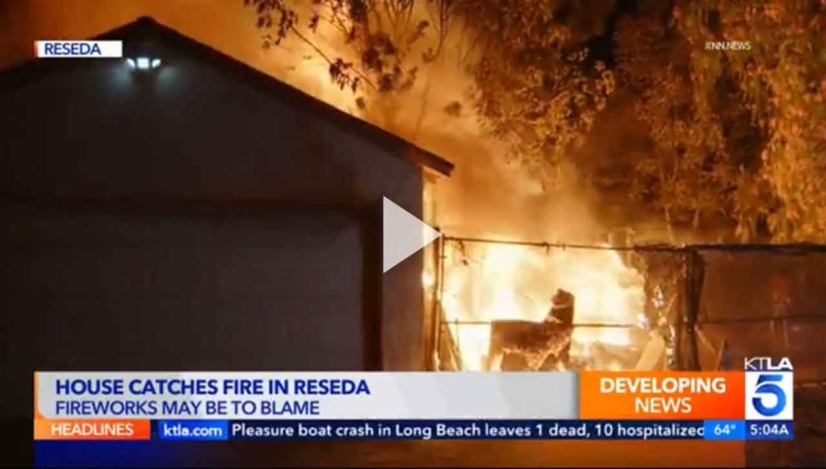 Los Angeles Firefighters Douse Reseda Garage Blaze, Protecting Adjacent Home on Independence Day