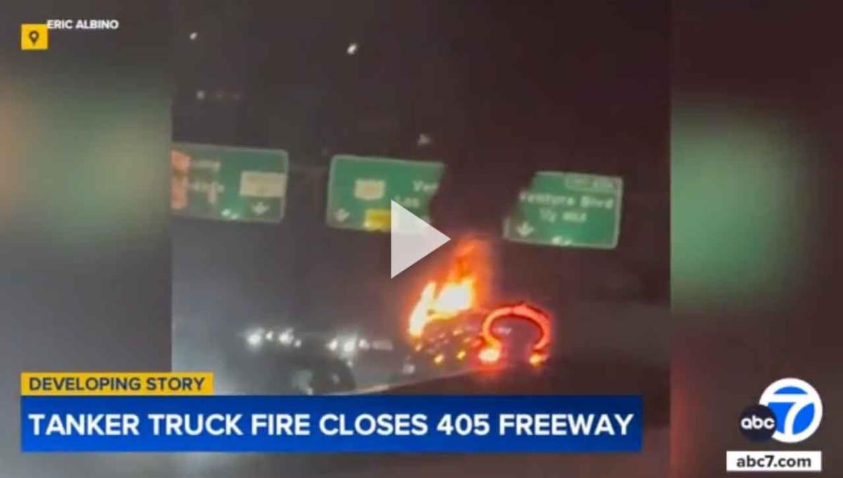 A stretch of the 405 Freeway in the Sherman Oaks area reopened Sunday morning, hours after a tanker truck fire shut down lanes. The fire was first reported on the northbound side of the 405 near Ventura Boulevard around 9:40 p.m. Saturday. The freeway was closed between Burbank Boulevard and Skirball Center Driver as fire crews put out the flames. Video from the scene showed the truck engulfed in flames, which was threatening what was described as 7,600 gallons of diesel fuel, according to the Los Angeles Fire Department. The driver was able to escape the vehicle. The fire was extinguished by 10 p.m., though heavy traffic remained on both sides.