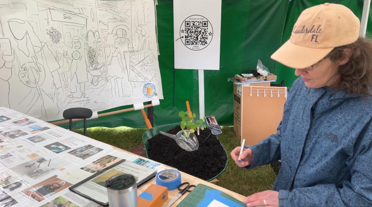 Emily Marie Harris of I.C.A.I., installation and silk screen making at Meredith Dairy Fest, June, 2024