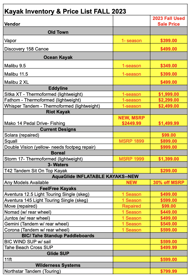 This two-day sale event is the perfect opportunity to get great deals on high-quality pre-owned kayaks and stand-up paddleboards.