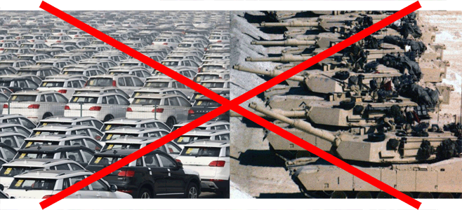 | Driving gas-guzzling cars requires expensive wars for cheap oil supply |