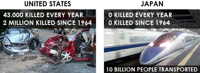 It is our U.S. Congress' job to properly fund the right kinds of transportation, like the rest of the world leaders have been responsibly doing for decades. America needs to catch up with the world, and soar into the 21st century with the best transportation system possible, rather than our current left-over relic of the 1950s, that is failing us at every turn, and getting worse.