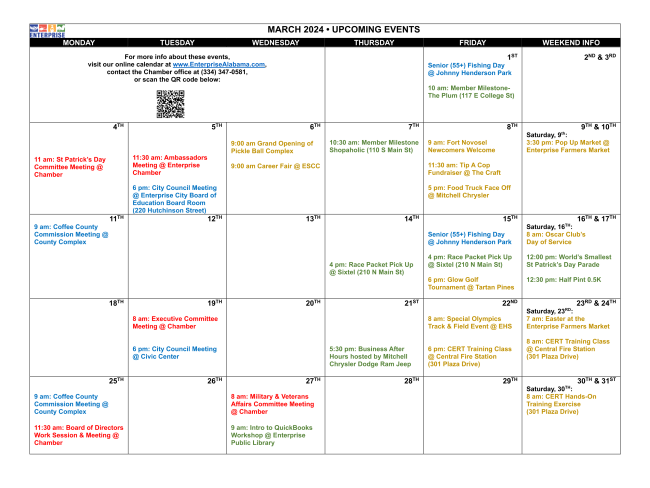 Applications must be submitted online, or returned to the Chamber office at 553 Glover Ave, Enterprise, AL, no later than April 14, 2024.